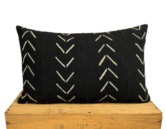 African Mudcloth Pillow, Throw Pillow Cover, 12x24 Inch Lumbar, Black and White, 'Maxwell'